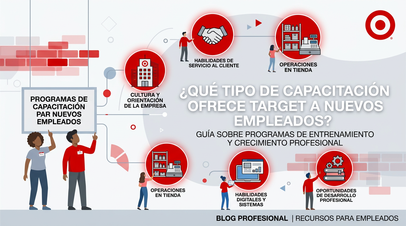 Target ofrece un programa de capacitación pagada diseñado para que aprendas todas tus funciones desde el primer día. No necesitas tener conocimientos previos, ya que la empresa se encarga de enseñarte el manejo de sistemas y atención al cliente.